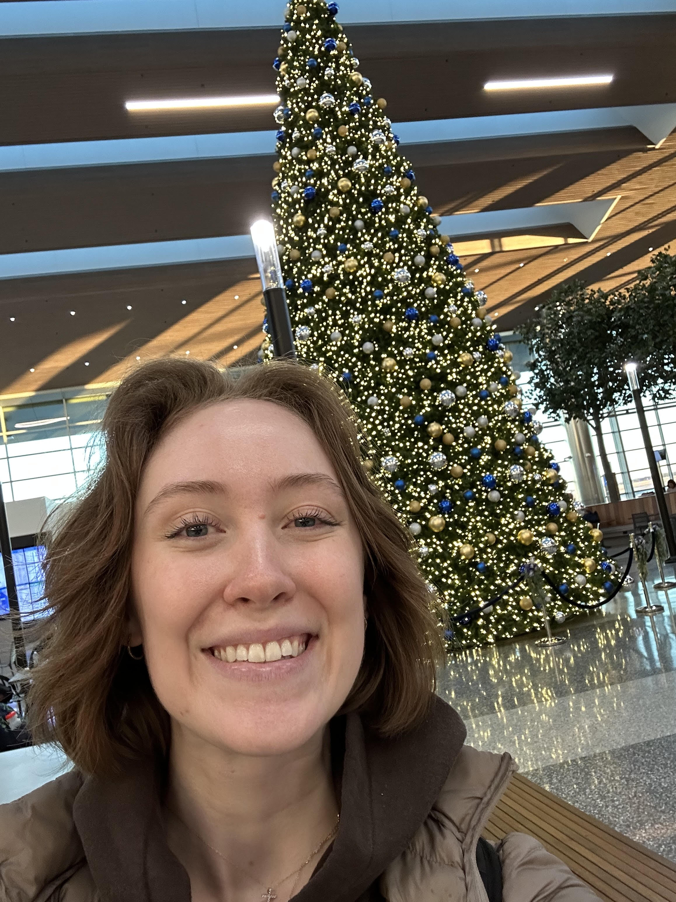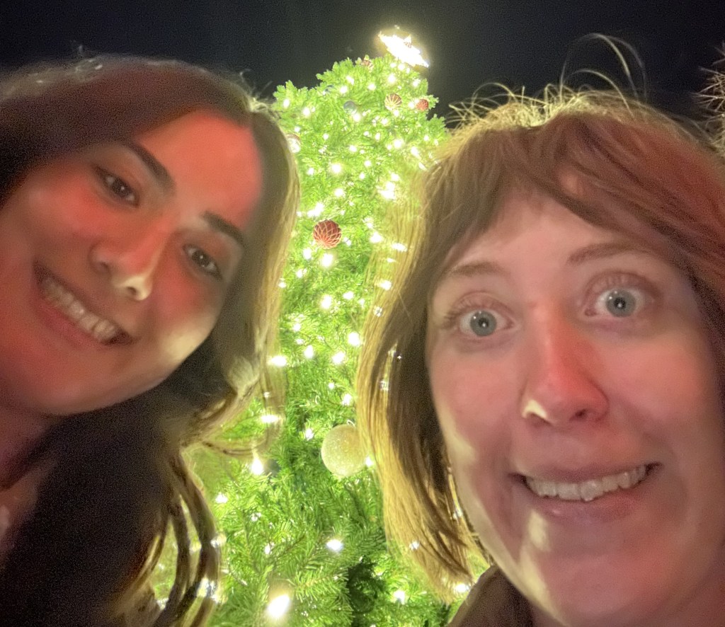 There was a warmth in the room that can be attributed to several things like how cold it was outside or the hot meal in front of us both. Even going onto the square later to try a new sweets shop reminded me how warm some spaces can be depending on who you’re with. Waiting for my drink, (awful – a matcha that had no blended powder, just clumps of bitter green in lukewarm milk) watching a girl play Minecraft on her laptop knowing she likely just finished finals was a nostalgic feeling. Taking a selfie in front of the Christmas tree with the exactly wrong lighting and deciding to settle for a bad photo and not trying to fix it. All these moments brought such a contentment. Dinner with Ally encapsulated what this month felt like to me; laughing, celebrating, and bad photos.